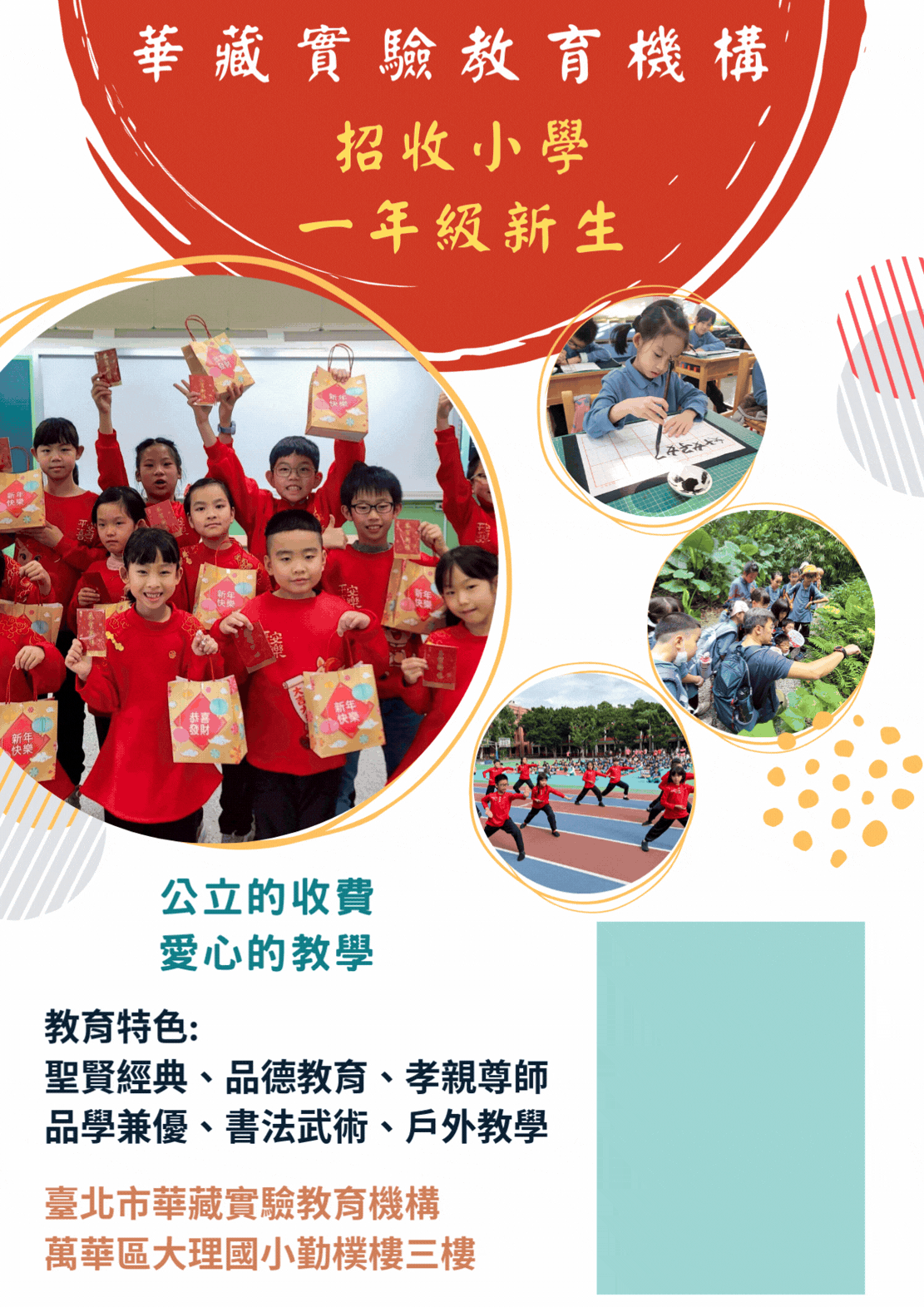 招生以小學一年級新生為主,歡迎造訪華藏實驗教育機構網站:https://hwadzan.tp.edu.tw